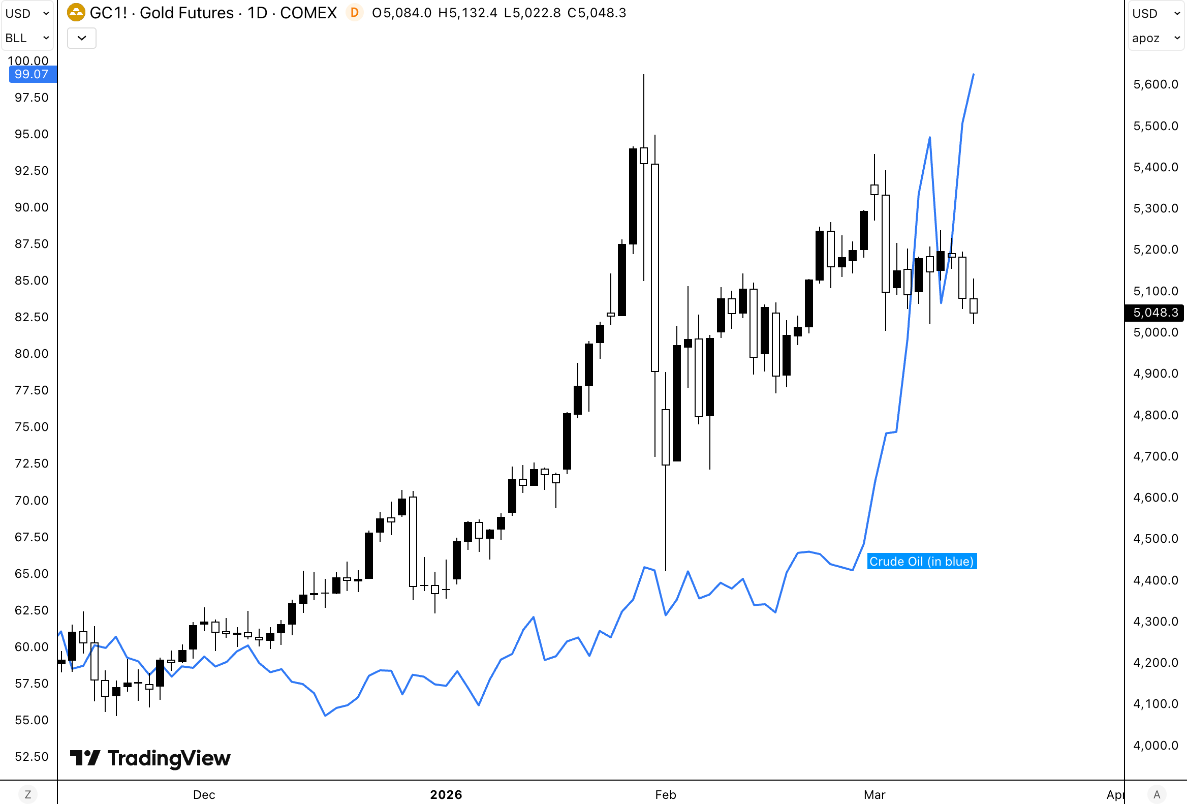 Gold has been consolidating over the past two weeks - even though the escalating Iran conflict would typically be expected to drive prices higher. The metal’s muted reaction has left many market participants puzzled.