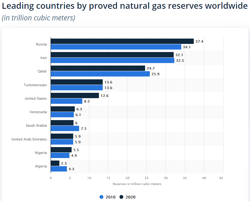 The country with the most proven NatGas reserves is Russia and the Russian company Gazprom is also the most important player in the industry.