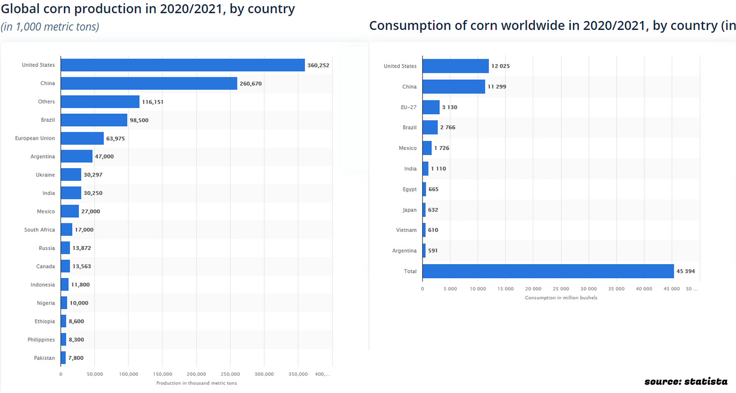 As you can see the main players in the Corn production industry are the USA and China. While the US is producing a lot, China is an important variable in terms of imports.