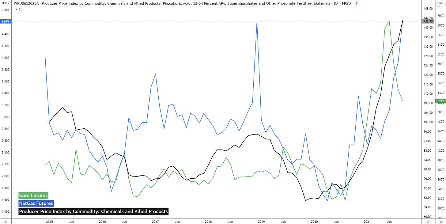 The first important metric to look out for is the price of Fertilizers. Grain prices usually have a high correlation to Fertilizer prices. If Fertilizer prices are surging - Grain prices tend to surge too. This is because Fertilizers are closely tied to grain prices as they are used in their production.