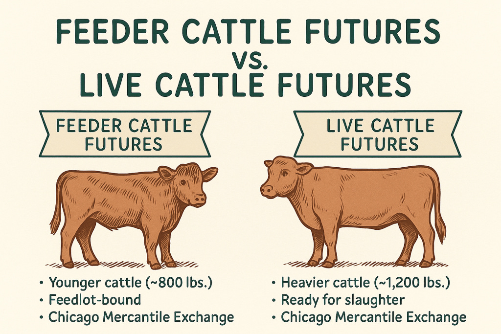 Feeder cattle futures versus live cattle futures represent two distinct futures contracts that serve different stages of the beef production cycle. Live cattle is heavier than feeder cattle - and therefore the one that’S ready for slaughter. The cattle production cycle typically spans 12-18 months from weaned calf to finished beef.