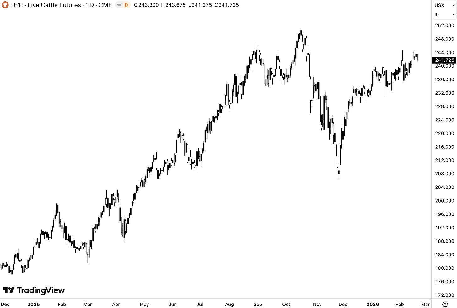 One could argue that feeder cattle reflected the problems with the cattle disease and the low herd count better in the price action - compared to live cattle, as those contracts thend to also be influenced heavier by customers demand for the finished product.
