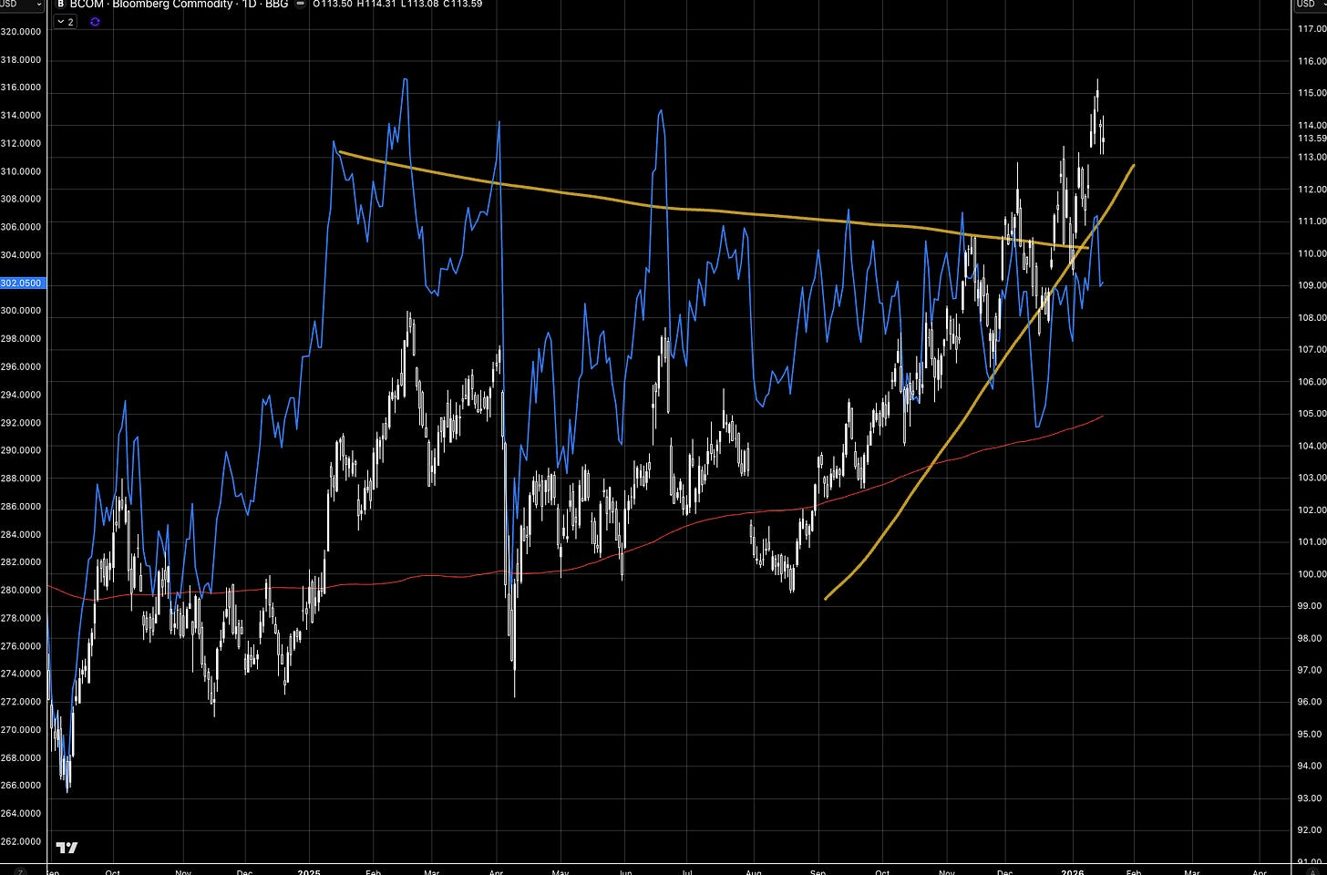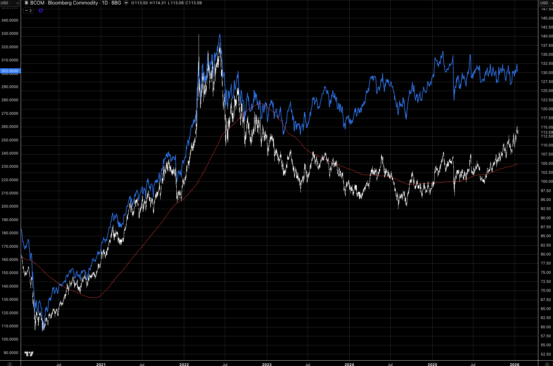 Great analysis on the divergence between BCOM and CRB. The weighting methodology really matters when assessing market breadth. It's interesting that metals might be leading indicators for other sectors - particularly if inflation expectations shift or supply constraints ease in energy/ags. Will be watching to see if grains/softs catch up in Q2-Q3 as you suggest.